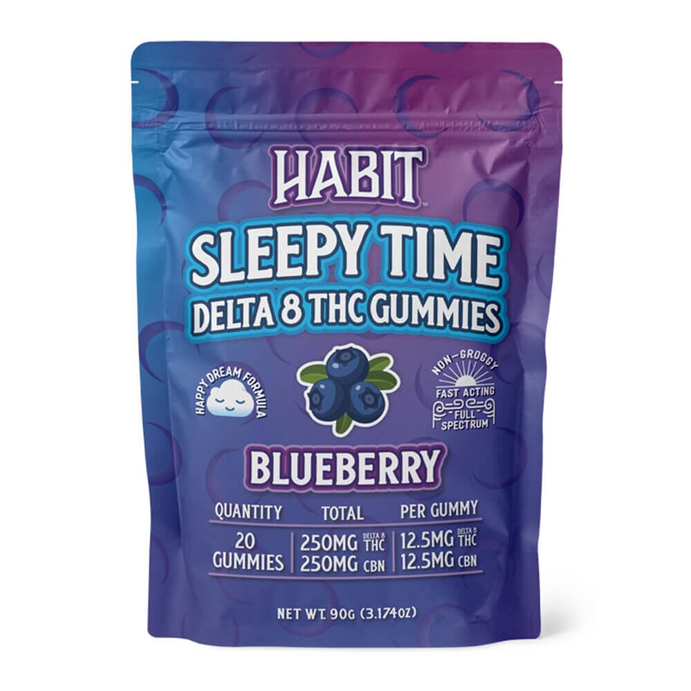 Habit’s Sleepy Time Gummies contain 12.5mg of Delta 8 and 12.5mg of CBN per gummy. These gummies are vegan and made in small batches with love in Southern California. These gummies are made with organic hemp from the USA Enjoy!