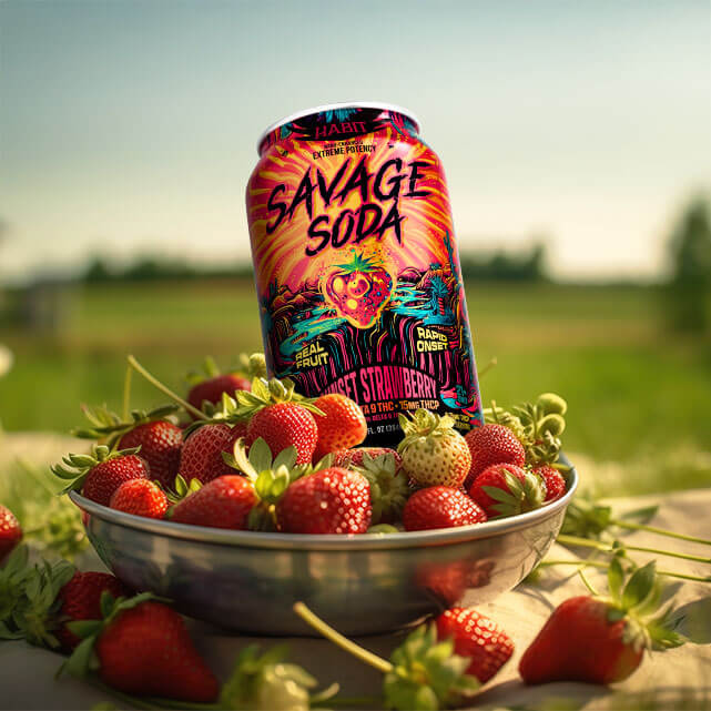 The Habit Savage Soda – Sunset Strawberry delivers flavor and firepower in every sip. With nano Delta-9 THC, THCP, and a rush of strawberry citrus taste, it’s built for bold experiences
