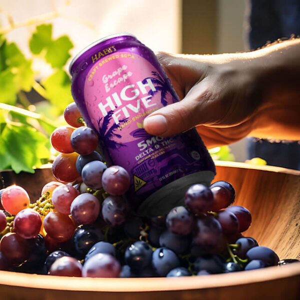 High Five Grape Escape offers a mild and steady feel. 5mg THC drinks feels light for most people. Easy to settle into. The grape flavor makes the drink feel smooth. The grape flavor adds a smooth, fruity touch that keeps the drink bright and enjoyable from start to finish.